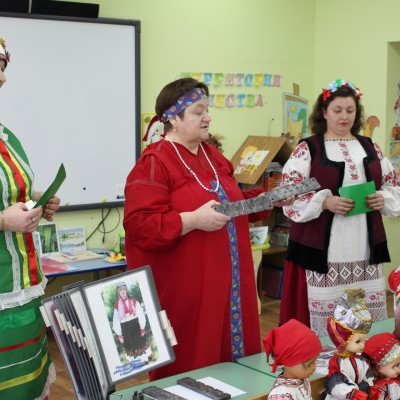 Совместно с воспитателями Сахаровой В.К. и Губиной Г.И. библиотекари рассказали воспитанникам о том, что каждый народ выражал своё понимание красоты прежде всего через костюм, который выполнял не только практическую функцию, но и создавал облик человека.